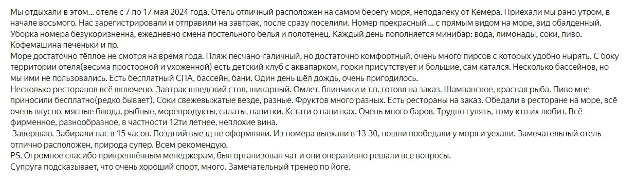 Отзыв об отдыхе в отеле NG Phaselis Bay 5* (Турция)Отзывы › Менеджер: Ксения Хлопова › Отзыв об отдыхе в отеле NG Phaselis Bay 5* (Турция) 0 +1 -1 Денис и Ирина написал (а) 2 года назад
